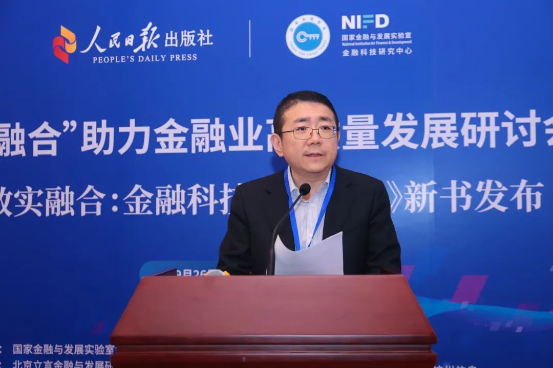 人民日报出版社总编辑丁丁在致辞中对各位与会嘉宾表示热烈欢迎,并向学术指导单位国家金融与发展实验室金融科技研究中心及主办单位北京立言金融与发展研究院表示衷心感谢,向《数实融合:金融科技创新实践》一书的两位主编杨涛先生和马洪杰先生,以及金融科技50人论坛(CFT50)致以崇高的敬意。他回顾了人民日报出版社与CFT50的合作历程,强调双方在金融领域的深度合作,已出版多本优质图书。他详细解读了新书《数实融合:金融科技创新实践》的内涵。他指出,书中收录了30篇案例,内容涵盖了从大数据、人工智能,到物联网、云计算,再到生物识别技术等多种技术形式,全方位地服务实体经济。书中深入挖掘了金融科技在乡村振兴、提升惠民服务、小微金融服务等领域的细节,实现了纵向和横向的全面覆盖。这些案例不仅为监管部门、金融机构、相关产业提供了重要参考,也为国内外院校的教学和科研提供了丰富的教材。他坚信,这将极大地促进我国金融科技的健康发展,为产业升级和创新贡献力量。最后,他表示,人民日报出版社将继续秉持以读者为中心的理念,致力于向社会各界提供优质图书,为提升全民各方面的素养贡献力量。